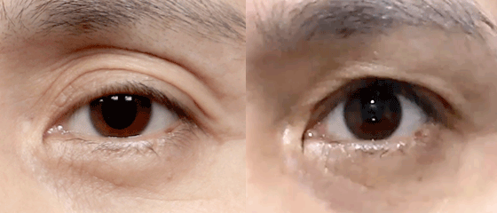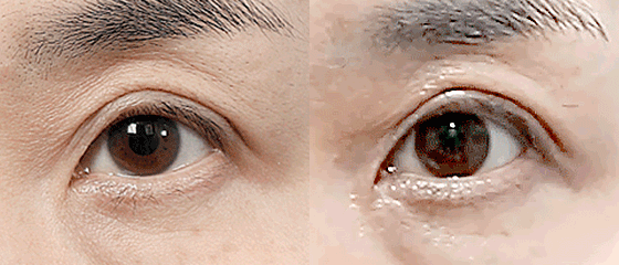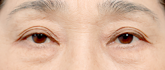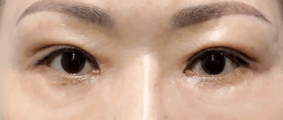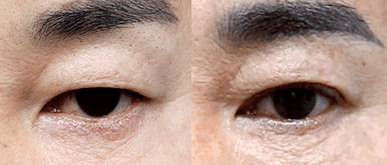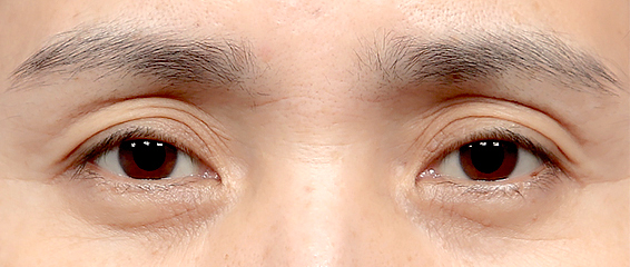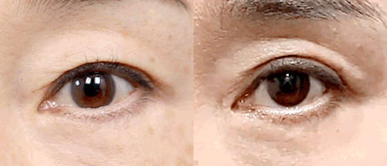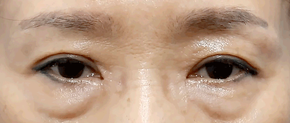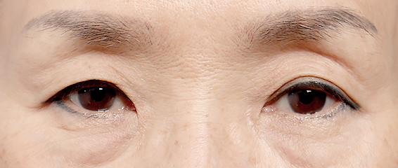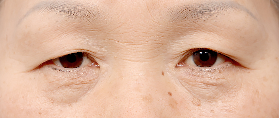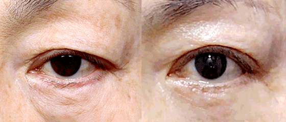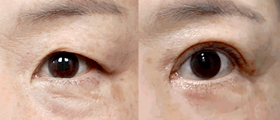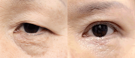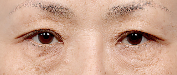 노화로 인해 눈꺼풀이 처지고 꺼진 상태입니다.